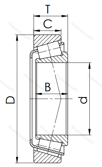 Строение данного типа детали состоит из сепаратора, роликов, а также двух колец, располагающихся снаружи и внутри. Отличительной чертой механизма является конусовидная форма роликов, удерживаемых ободом кольца, благодаря чему они могут одновременно воспринимать сочетание осевых и радиальных нагрузок.
